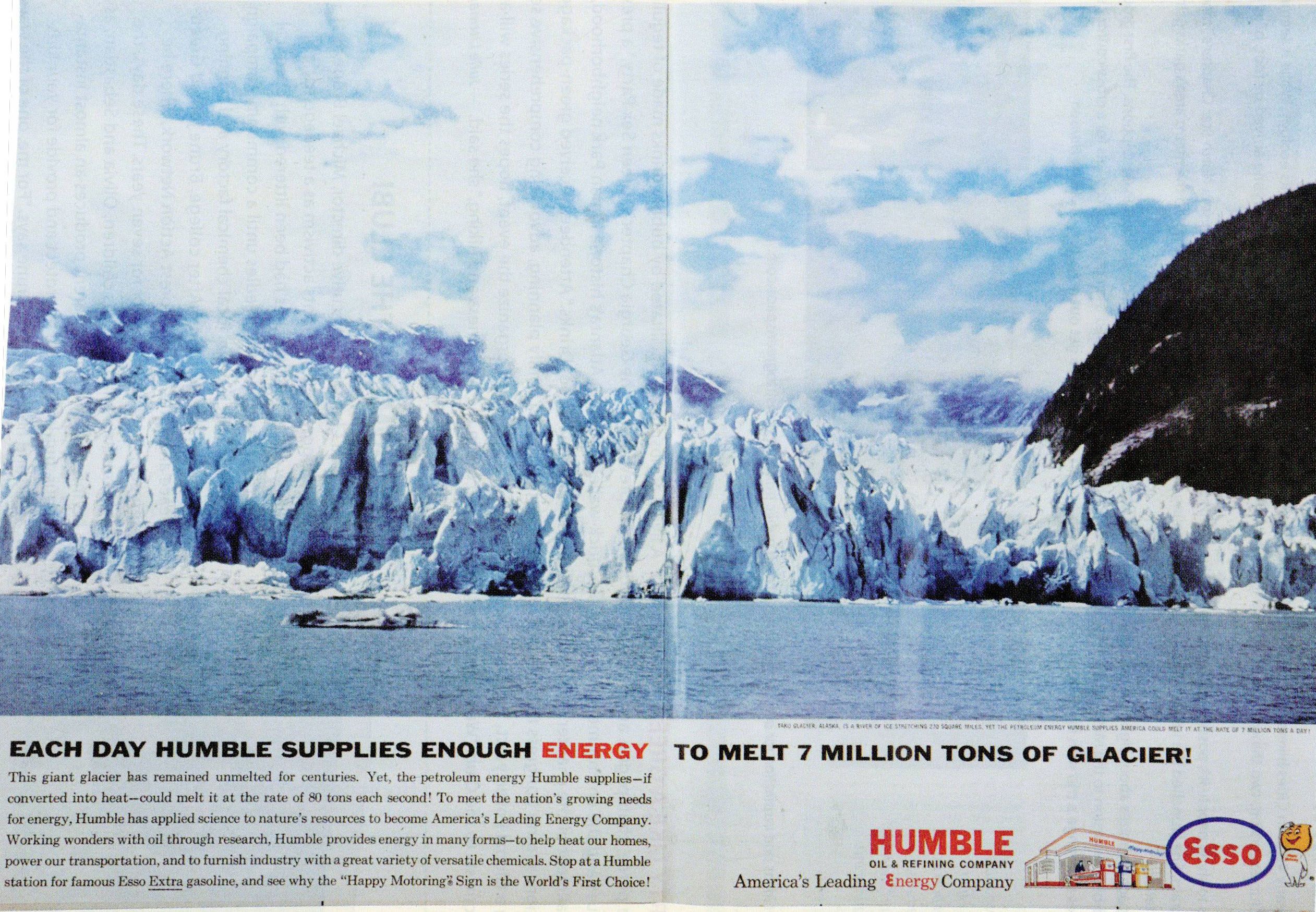 On the right are archival public communications materials from fossil fuel companies. My aim here is to juxtapose how strategies of